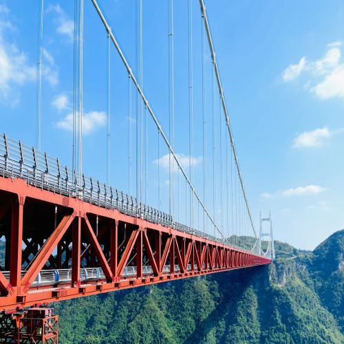 ▲ Aizhai Bridge, a kilometer-long suspension bridge spanning the Dehang Grand Canyon, holds four world records. More than just a transportation hub, it serves as a breathtaking viewing platform, resembling a rainbow in the sky amidst the clouds—a must-visit landmark wonder in western Hunan.