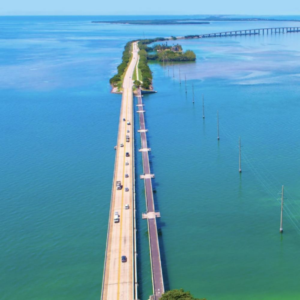 The most spectacular segment of the overseas bridges connecting the Florida Keys stretches like a straight line across the emerald sea. Featured in numerous films (such as "True Lies"), it's a classic destination for road trips and photography. Driving across feels like soaring above the ocean, with endless sea and sky on both sides. The bridge features pedestrian and bicycle lanes, allowing visitors to pause and feel the ocean breeze, occasionally spotting dolphins swimming beneath.