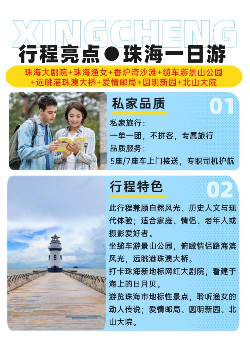 Check in at Zhuhai's new landmark, the viral-worthy Zhuhai Opera House, built on the sea; visit the iconic scenic spots of Zhuhai and listen to the moving legend of the Fisher Girl.
