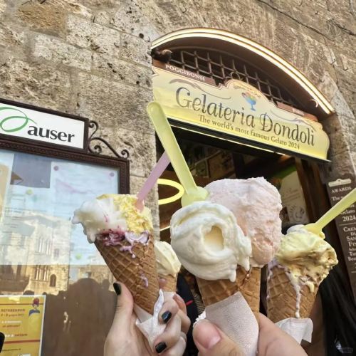 ▲ Next to Piazza della Cisterna, there is a Gelateria Dondoli, whose Italian gelato has won the World Gelato Championship multiple times.