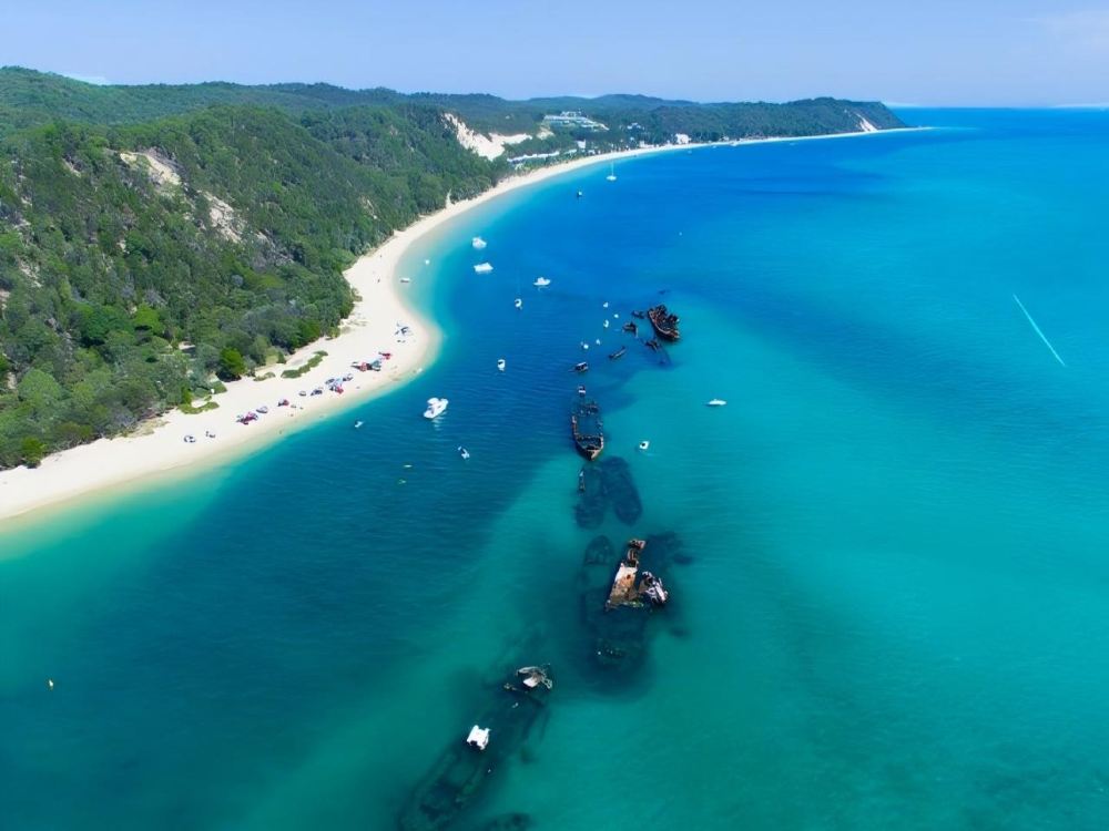 Ride a unique 4WD bus along the sand island tracks to the "Great Desert" on Moreton Island.