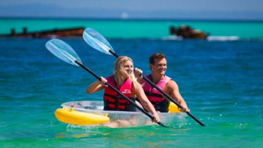 Explore the hidden underwater wonders of the Tangalooma shipwreck site on a fully guided transparent kayak tour (subject to weather, wind, and tidal conditions on the day).