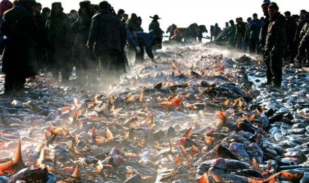 Witness the miracle of harvest on the frozen lake—Chagan Lake's winter fishing is a breathtaking symphony of nature, tradition, and strength. Every winter, a km-long fishing net is slowly drawn beneath the icy surface until thousands of pounds of fresh fish burst through the ice like a silver waterfall, with mist and vitality swirling in the crisp air. This is not just a visual feast but also a vivid display of the millennia-old fishing culture and the wisdom of life.