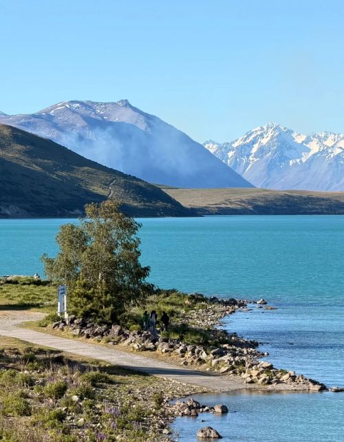 "Blue Lake Pukaki": The lake's color is more intense than Tekapo, resembling turquoise milk poured into the lake, creating an incredibly striking visual impact.