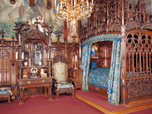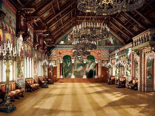 ▲ Exquisite Interior Decor This castle not only boasts outstanding external beauty but also impresses with its refined "inner charm." The interior is lavishly decorated, featuring a wooden carved bed that took 14 carpenters two years to complete. Swan-themed decorations are abundant, with their graceful figures appearing in murals, door handles, and even bathtubs. The most magnificent space is the Emperor's Hall: the vast ceiling depicts a blue sky dotted with brilliant stars, while the floor is adorned with mosaics of various plants and animals. The walls showcase murals depicting scenes from the opera "Tannhäuser," and a massive golden crown hangs in the towering hall, symbolizing supreme imperial power.