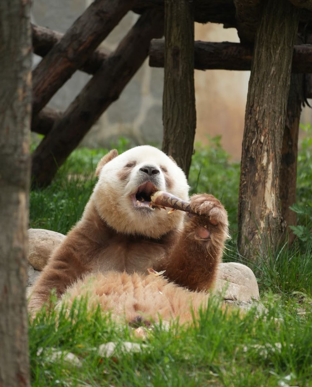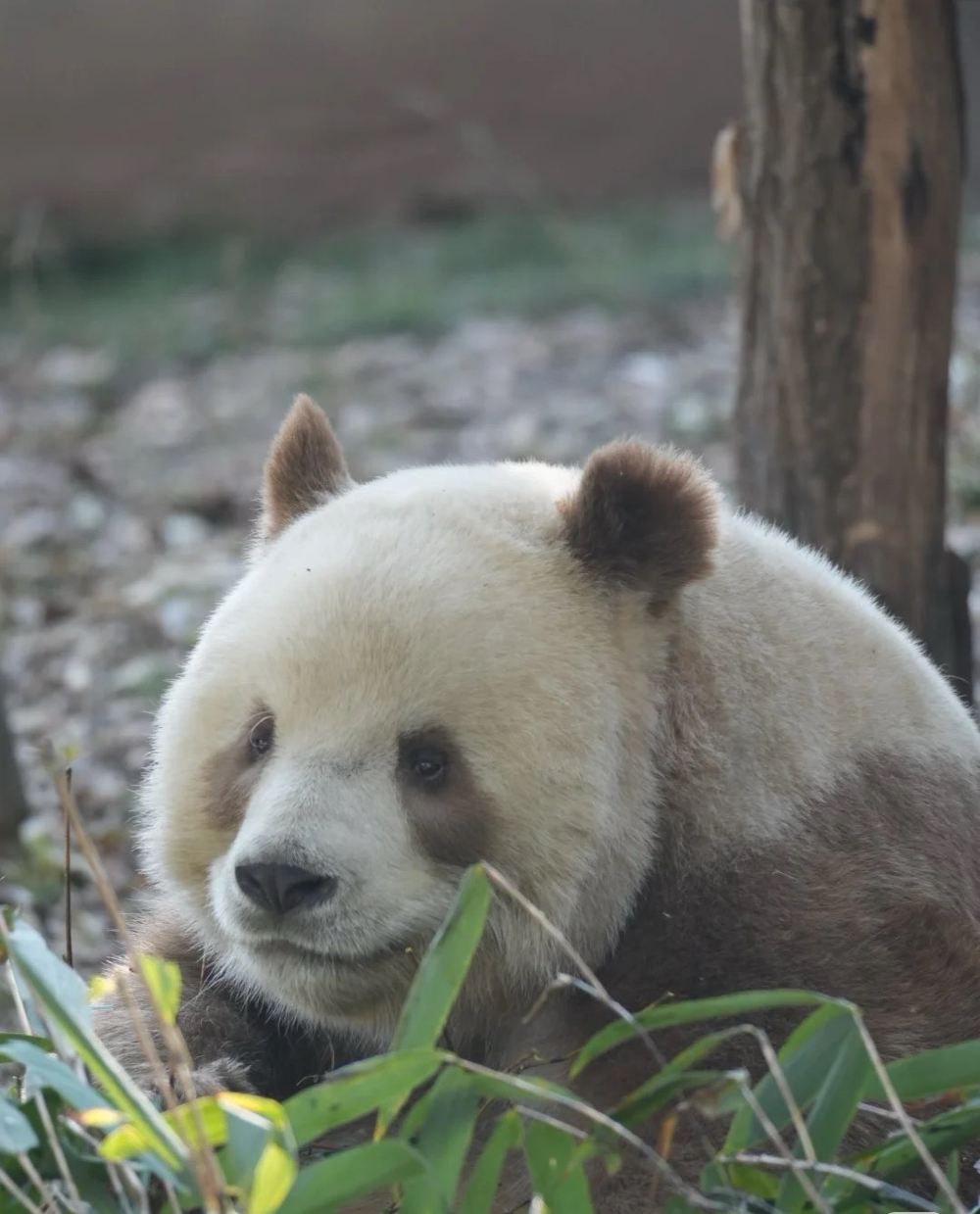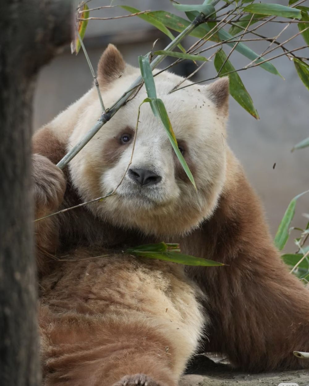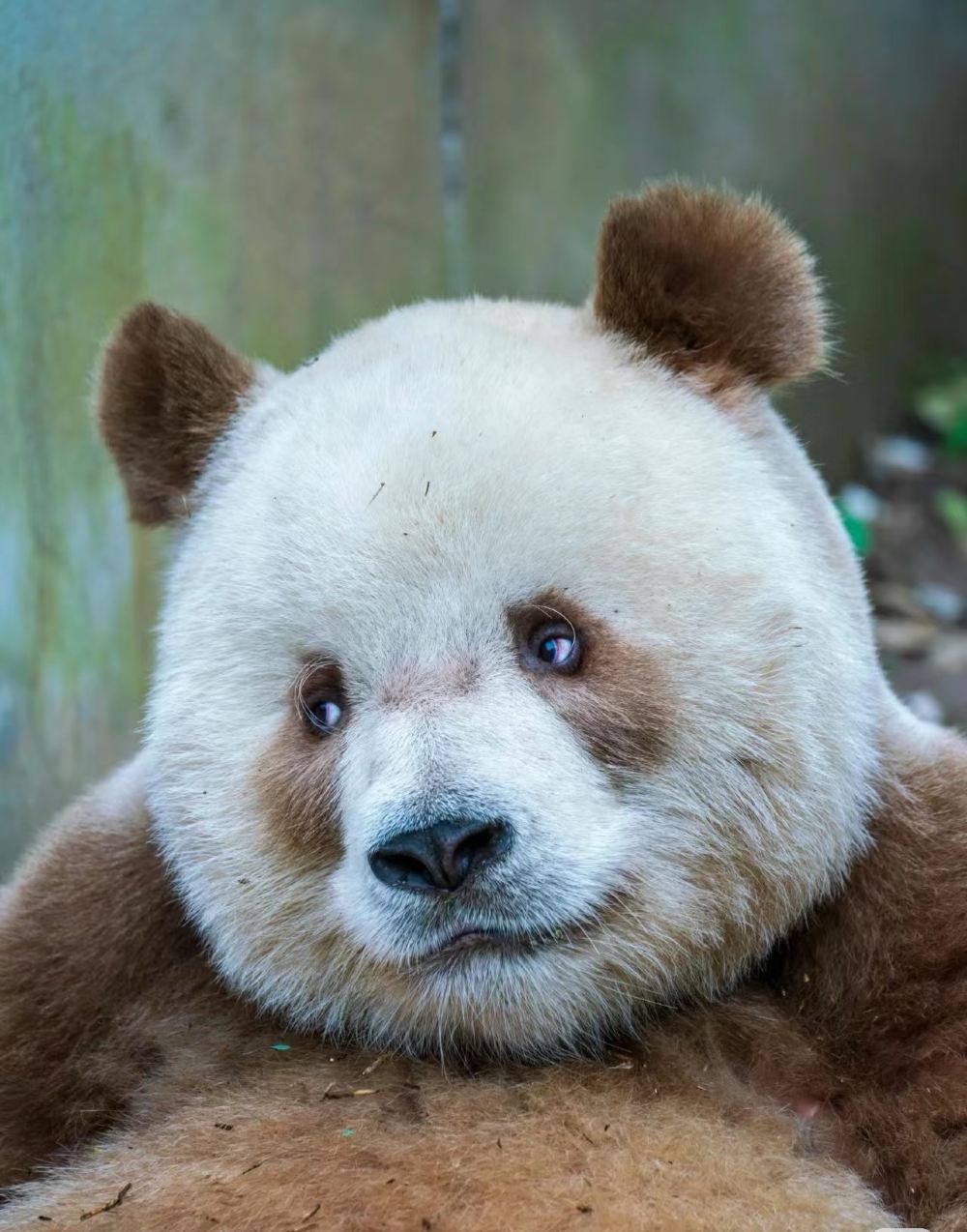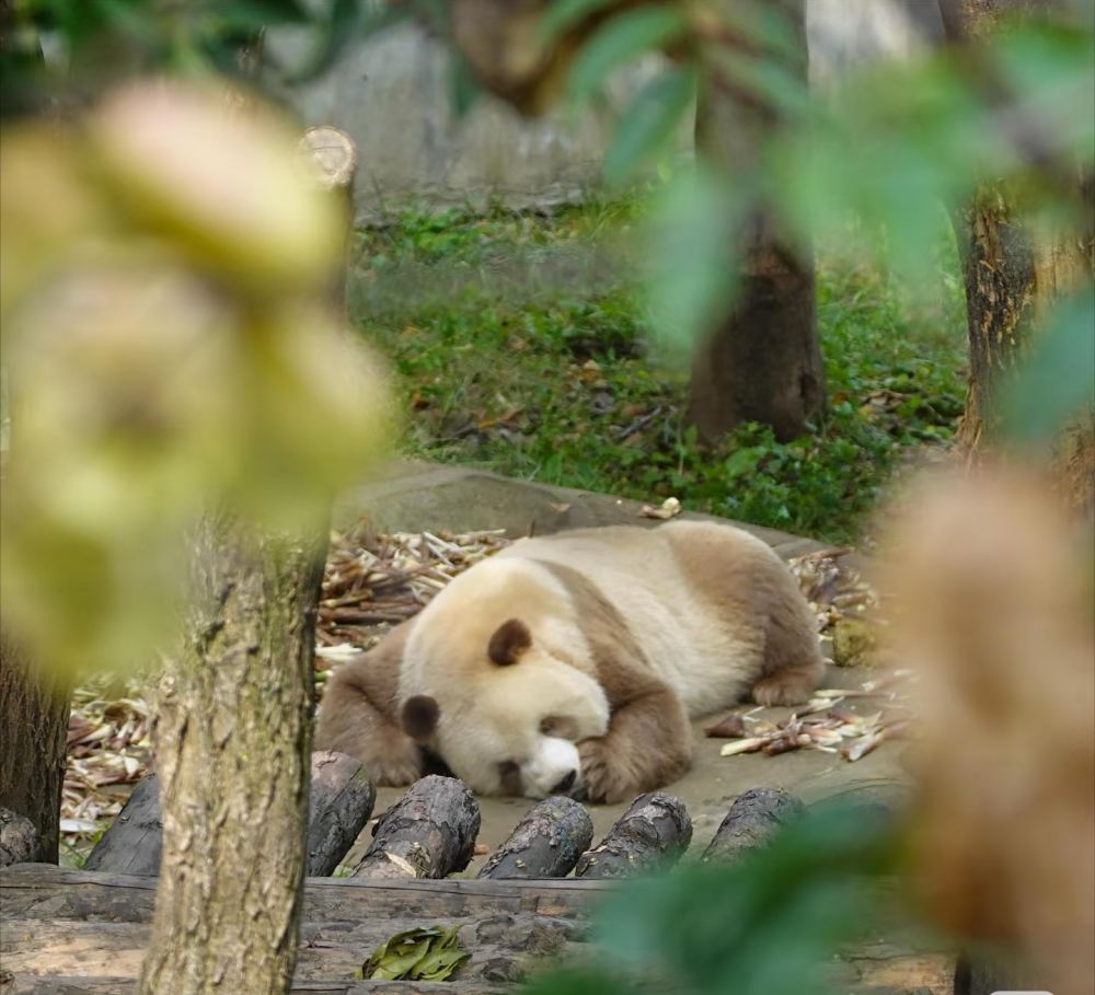 While most giant pandas sport the classic black-and-white coat, Qizai's stunning soft brown and white fur is the result of a rare genetic mutation. This unique trait makes him a true natural marvel and a star wherever he goes.
