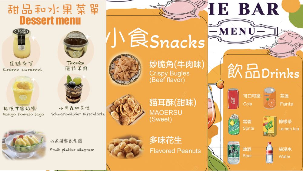 Thoughtfully providing each distinguished guest with a dessert and a serving of fruit, along with unlimited complimentary selected delicious snacks and beverages