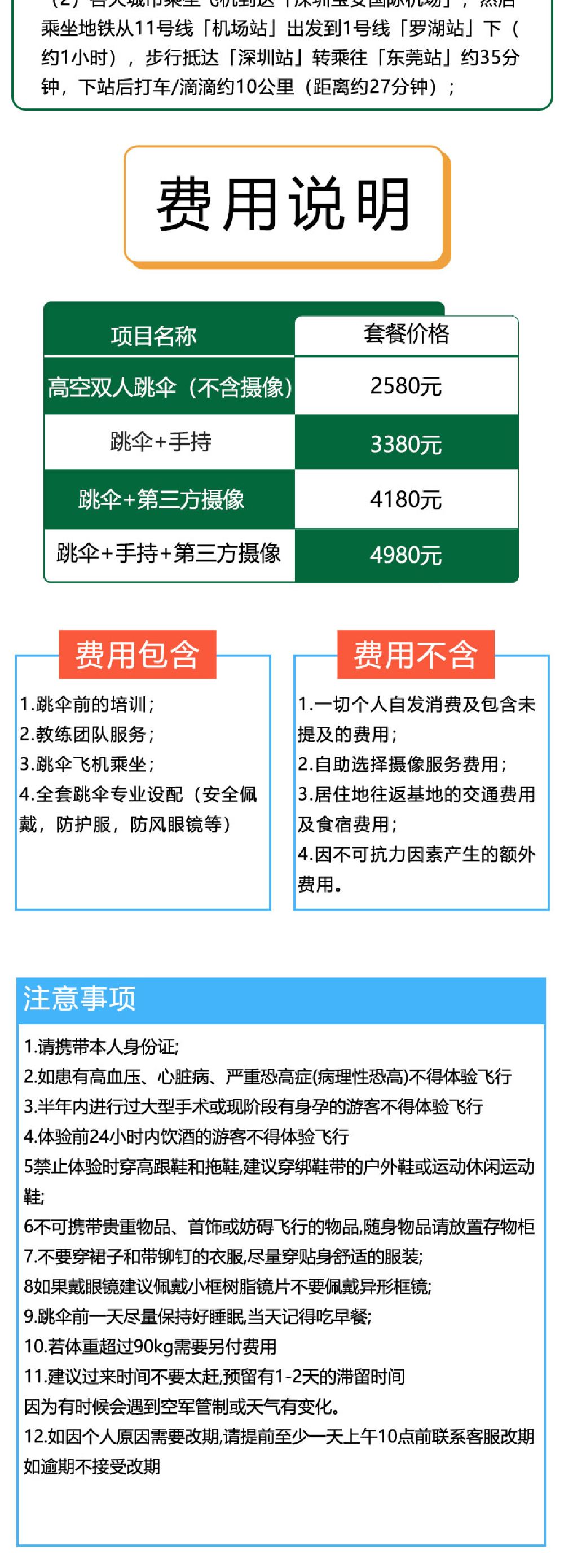 6. It is recommended not to consume excessive alcohol the night before skydiving and avoid eating too much before the activity. Skydiving is not allowed within 24 hours after diving. Pregnant women, individuals with a history of heart or brain diseases, severe hypertension, or other special conditions cannot participate in skydiving activities. If feeling unwell during the activity, please inform the instructor immediately.