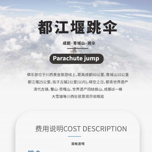 2. The entire parachuting activity, including round-trip travel time from local hotels to the parachuting base, and force majeure factors such as air traffic control and weather, it is recommended to reserve 1–2 days for the experience.
