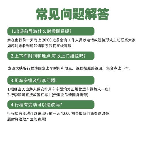 [Reminder] Round-trip with the same bus and seat. The bus has a luggage compartment for free storage, but we are not responsible for safekeeping. Please keep your valuables with you! During the May Day and National Day holidays, there will be large crowds. The departure time and return time may change based on traffic conditions. The specific times will be notified accordingly!