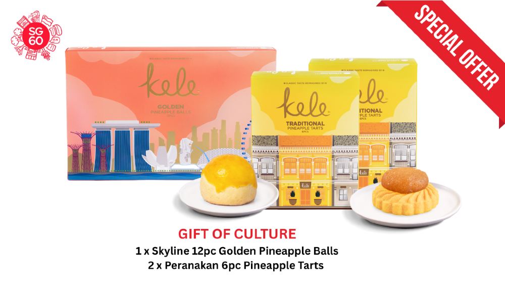 Voted best pineapple tarts in Singapore, KELE's handmade Traditional Pineapple Tarts has been winning the hearts of many for more than 30 years! Our secret family recipe gives it its signature milky flavour, soft buttery crust and perfect pineapple-to-tart ratio. A must-have festive treat and a uniquely Singapore piece.