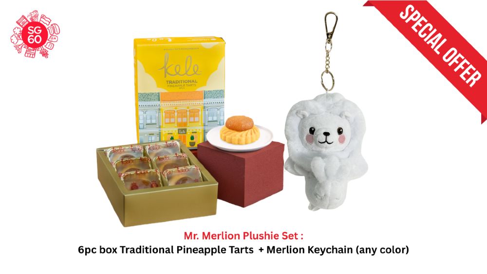 Say hello to Mr. Merlion and his adorable crew of pastel pals! Each Mr. Merlion & Friends bundle features the bestselling pineapple tart flavours, lovingly paired with an exclusive mini plush keychain - soft, squishy, and full of personality. Whether you're gifting or treating yourself, these limited-edition sets bring joy in every bite and cuddle.