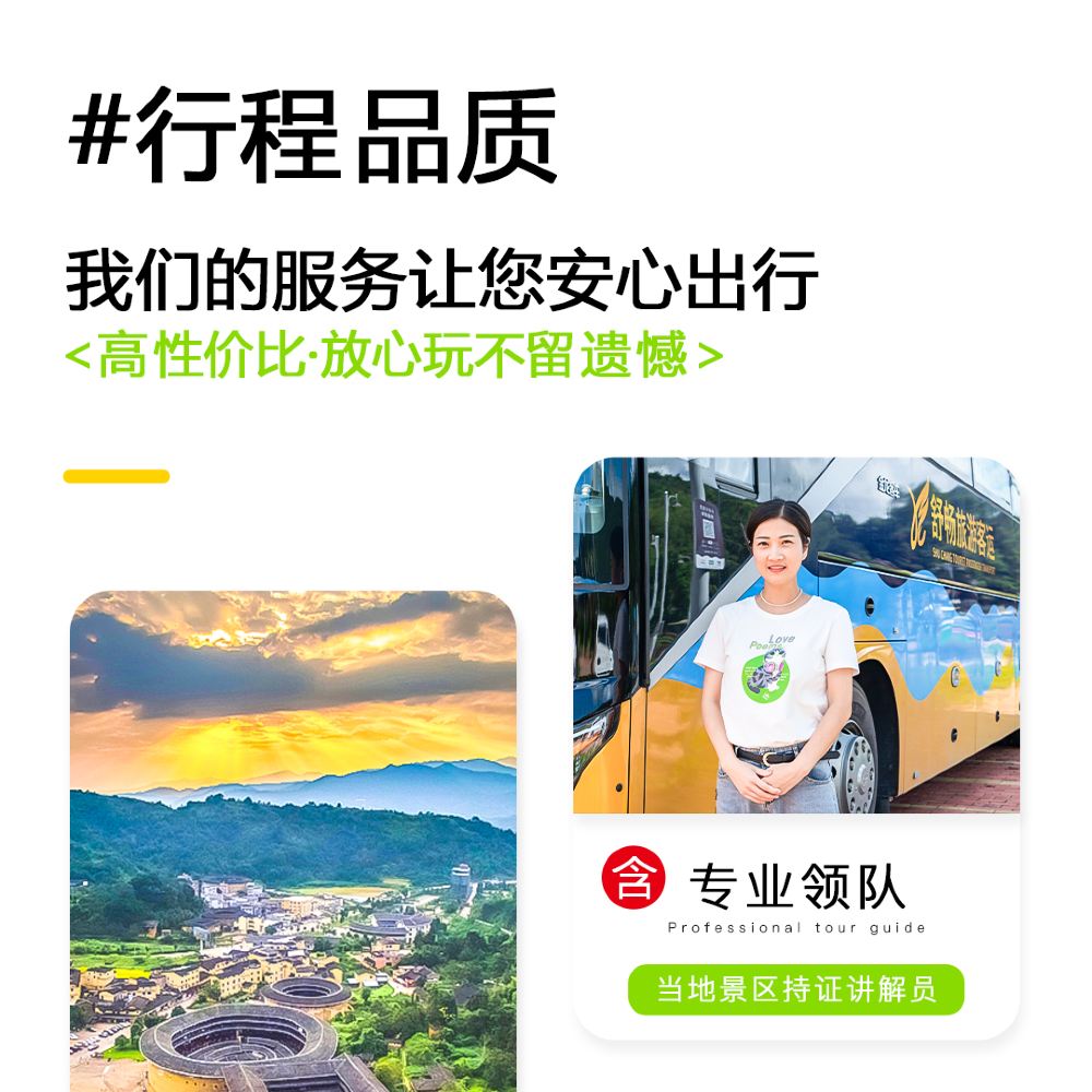 2. This product will arrange a suitable vehicle type based on the actual number of passengers, following the first-come-first-served principle without reserved seats or seat assignments. Without affecting your itinerary, the vehicle may be shared between the Fujian (Nanjing) Tulou Scenic Area and Yongding Tulou clusters, requiring vehicle changes during transit. Thank you for your understanding.