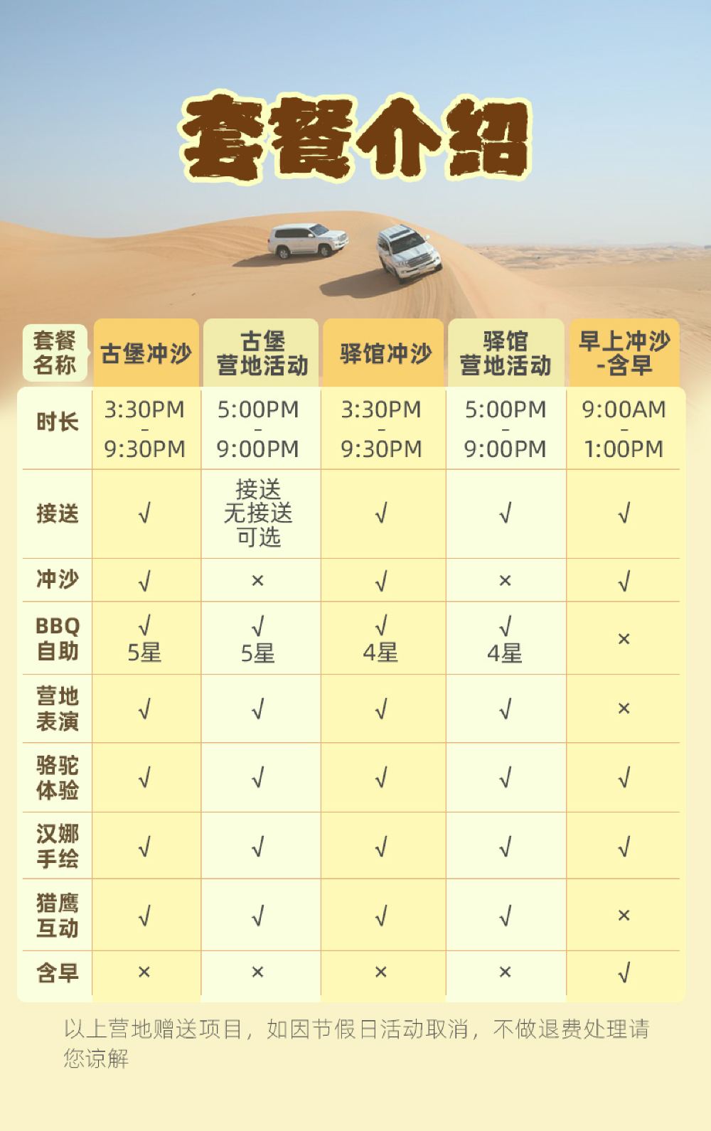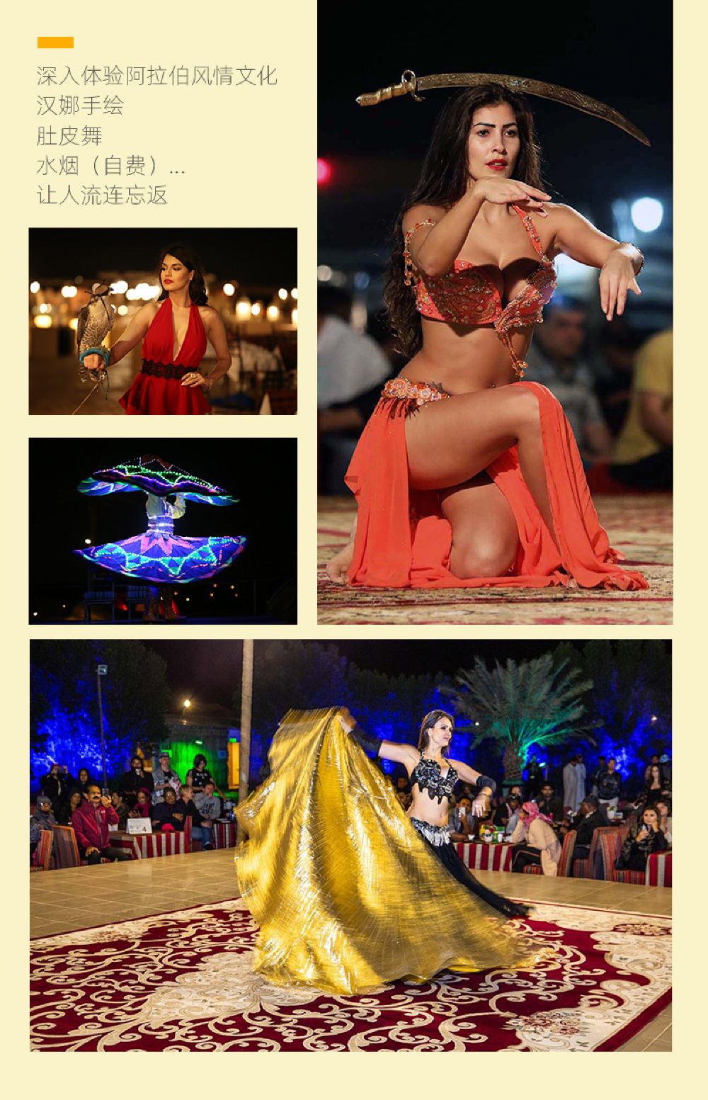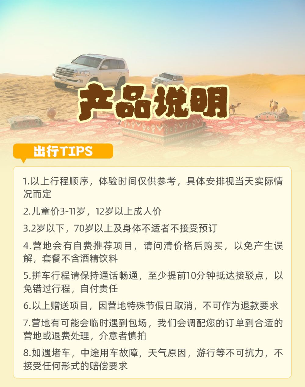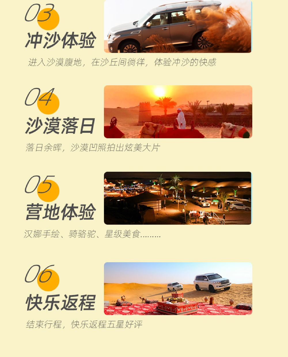 An Arabian royal castle-style architecture, immersing yourself in the high-end luxury camp of One Thousand and One Nights; Special option: Desert Oasis Camp dune bashing, with optional pick-up service