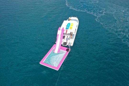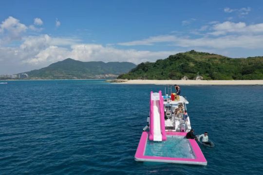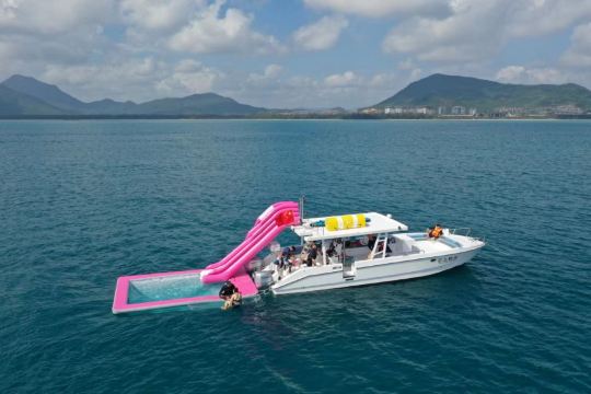 Included entertainment: Yacht self-driving experience, free snorkeling, snorkeling photography, complimentary snorkeling equipment, sea floating mat, water slide, swimming pool, jet ski, banana boat ride, guide service, photography with glass-bottom boat, disposable mouthpiece, air-conditioned cabin lounge, life jacket. Meet at the dock before self-driving.