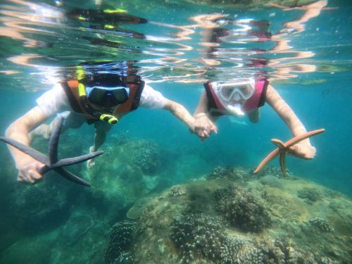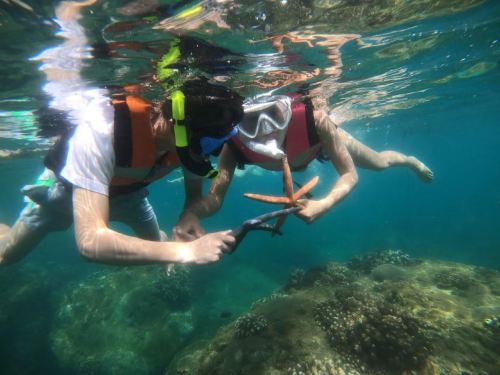 Small group snorkeling with catamaran sailing boat/yacht at Jiajing Island