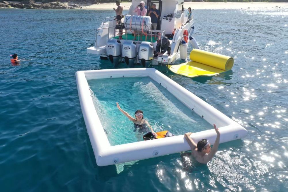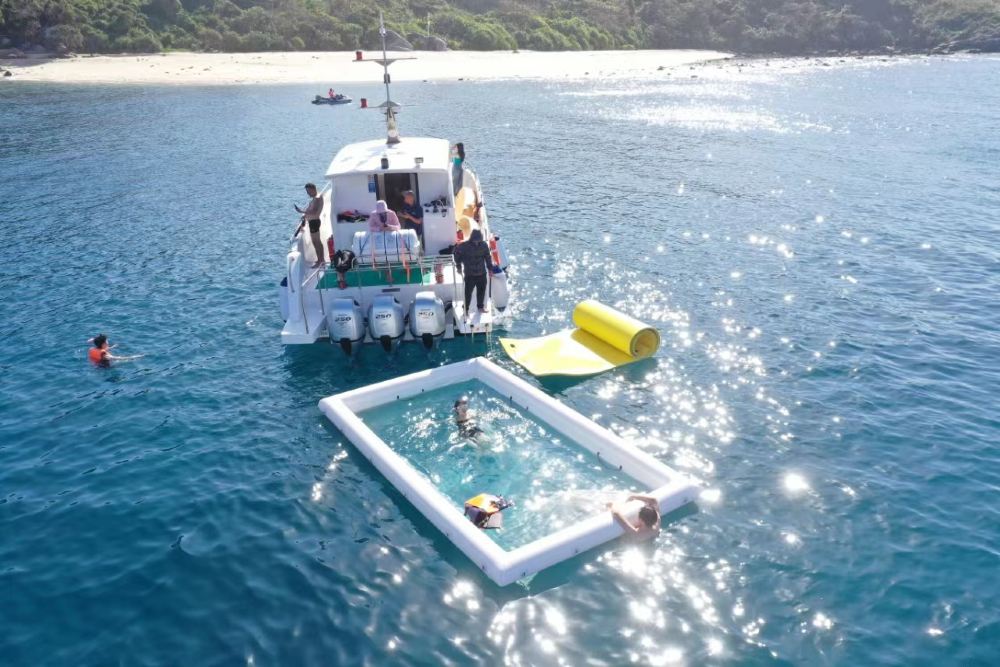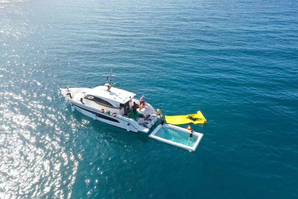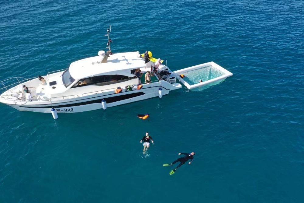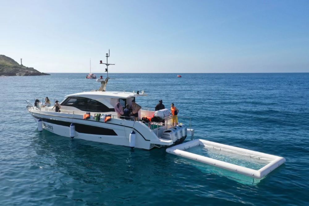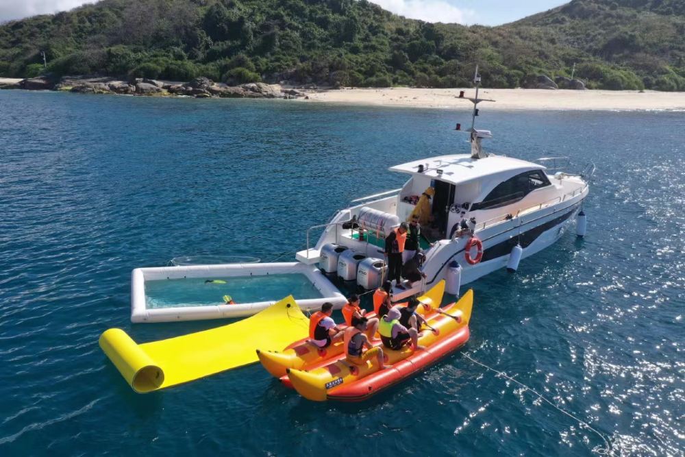 Included entertainment: Yacht self-driving experience, free snorkeling, snorkeling photography, complimentary snorkeling equipment, sea floating mat, water slide, jet ski, banana boat ride, guide service, photography with glass-bottom boat, disposable mouthpiece, air-conditioned cabin lounge, life jacket. Meet at the dock before self-driving.