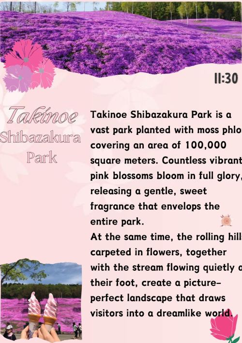 ② Visit the famous cherry-blossom viewing destination, Takinoue Moss Phlox Park, and experience the enchanting pink scenery spread across 100,000 square meters!