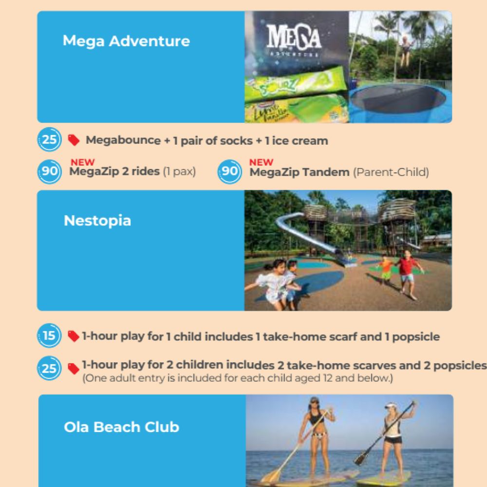 This pass allows you to redeem island products at a discounted price and enjoy free entry for two people. Simply scan the QR code at the Sentosa Express gate before boarding, or at the Sentosa entrance when driving into the island, to enjoy free entry. One pass lets you fully enjoy your Sentosa trip, allowing you to visit up to 80 attractions. Plan your itinerary now and start your wonderful journey!! Click