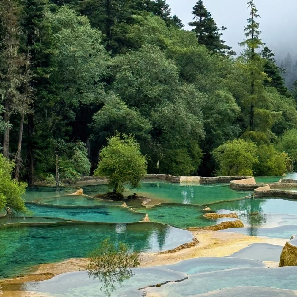 ▲ The core area of Huanglong National Scenic Area is dotted with over 3,000 colorful pools. The main attraction features uniquely structured and vibrantly colored travertine views.