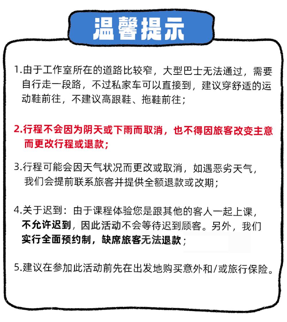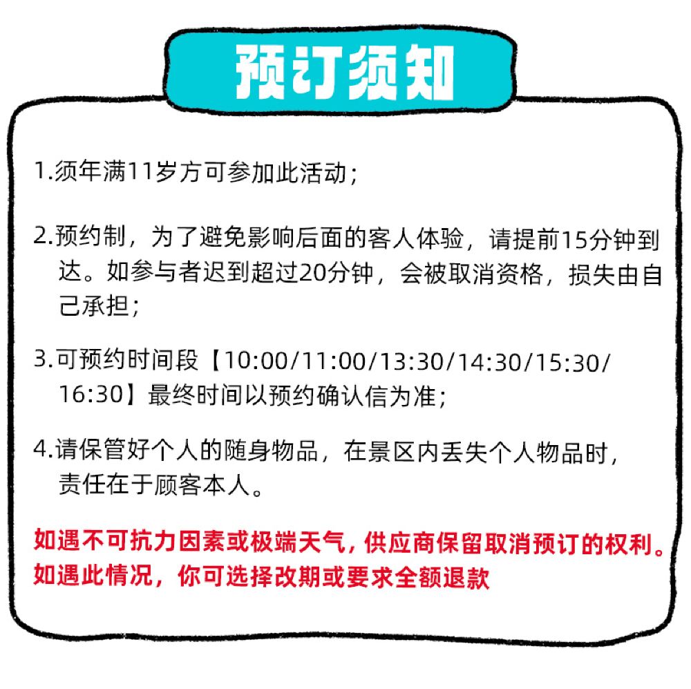 In the event of force majeure or extreme weather conditions, the supplier reserves the right to cancel the activity. In such cases, you may choose to reschedule.