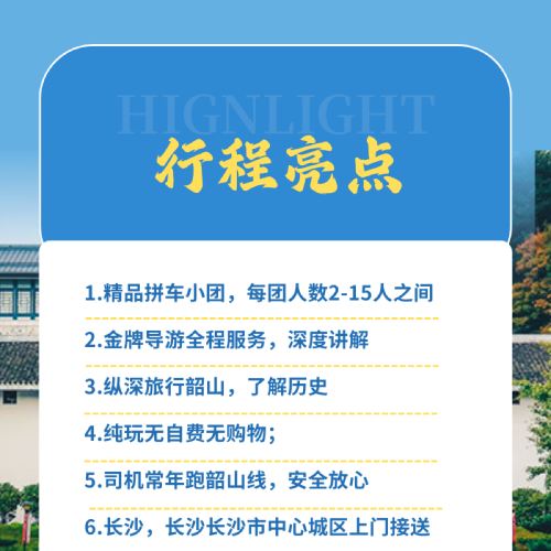 The package itinerary is the same, including the reservation and admission tickets for Shaoshan attractions, pick-up and drop-off service in the main urban area of Changsha (designated zones), and a guide throughout the journey.