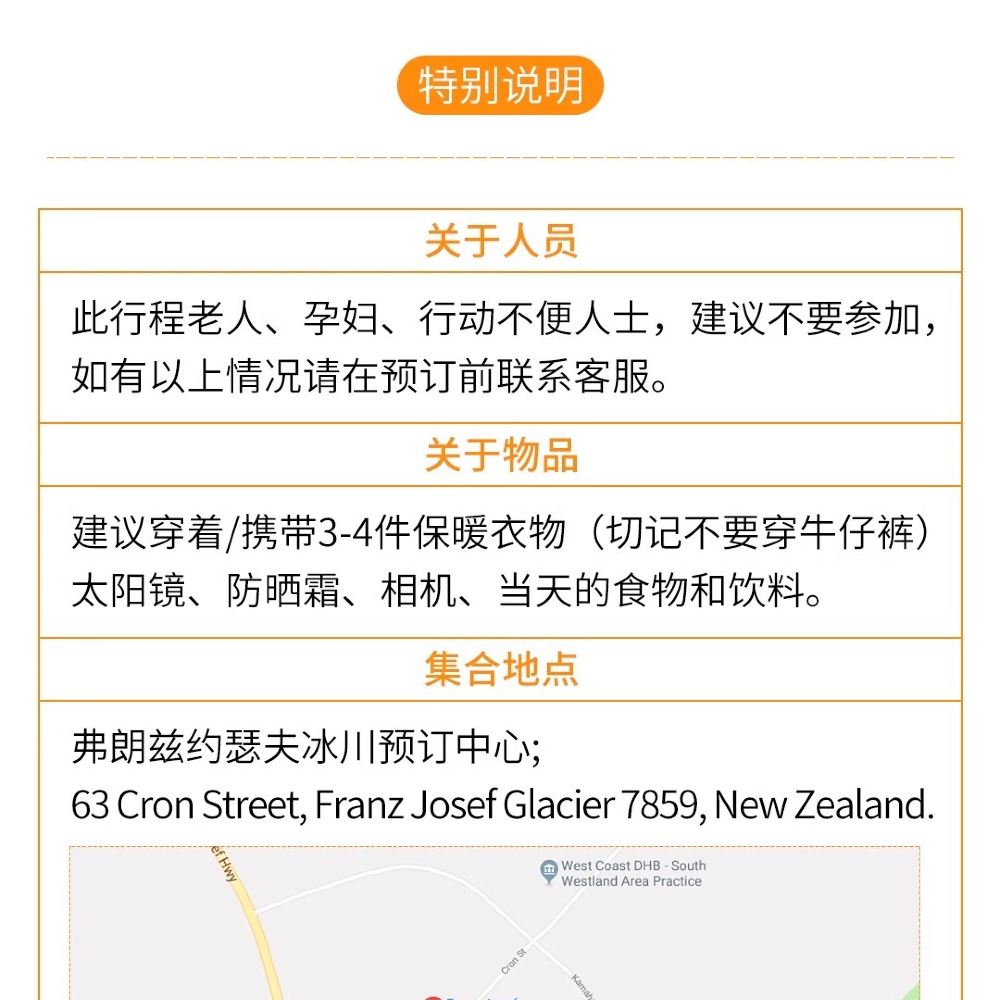 8. The use of drones is prohibited at Fox Glacier and within the national park. Violations will result in confiscation of the drone and a fine of NZ$5,000. For New Zealand drone flight regulations, visit www.airshare.co.nz.