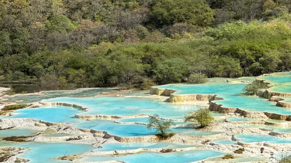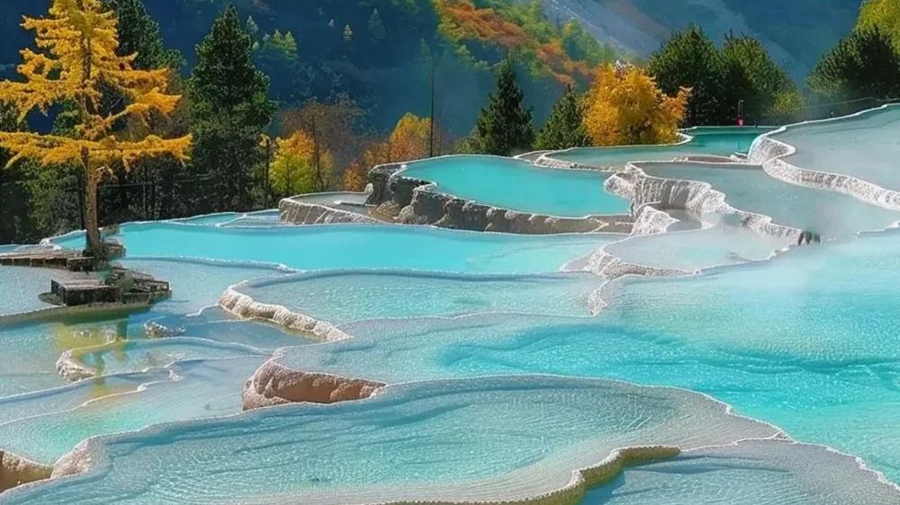 ▲ China's Living Geological Canvas Huanglong, a UNESCO World Heritage Site in Sichuan, captivates with its dreamlike travertine terraces. Thousands of mineral-rich pools cascade like liquid gemstones—turquoise, jade, and gold—carved over millennia. The "Yellow Dragon" illusion, formed by sunlight reflecting on golden calcium deposits, weaves through valleys, blending myth with nature's artistry.