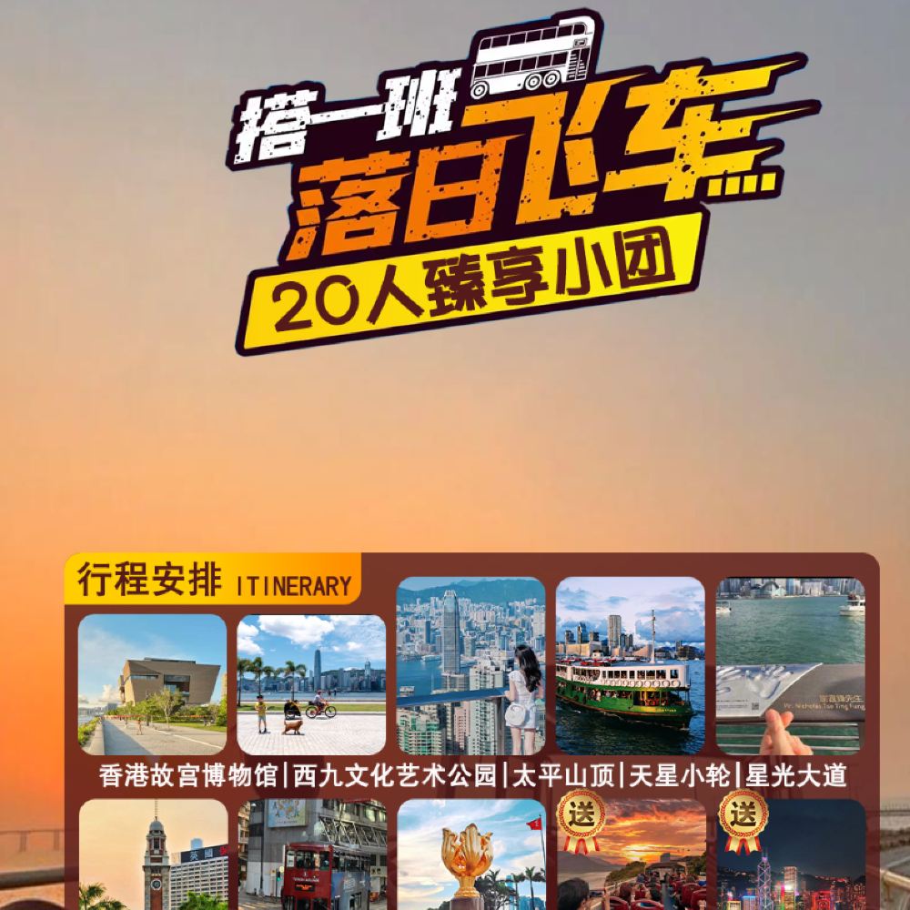 Special note: The join-in tour departs from various cities to Hong Kong. The connecting segment does not maintain a group of 20 people throughout. The itinerary proceeds with a smaller group of 20 after arriving at the first attraction. We apologize for any inconvenience caused.