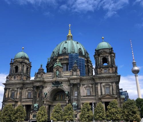 ▲ ️ Berlin Cathedral | An Imperial Elegy Beneath the Cream-Green Dome! Ascend to the Top for a Heart-Stopping View of Berlin's Skyline The gilded altar and stained glass filter sunlight into honeyed hues. Stand before the organ in a pearl-white gown, and your backlit hair naturally glows with a divine radiance. The Hohenzollern Crypt in the basement entombs 29 emperors, their bronze coffins engraved with the iron-blooded epics of Prussia. Climb 270 steps to unlock the dome's circular gallery, where the pink sunset skyline magically frames the TV Tower! Savor Black Forest cake with elderflower tea at the cathedral café—its bittersweet flavor mirrors Berlin's rebirth. Closed on Mondays (least crowded), the stained glass casts diamond-like light beams so breathtaking they leave you speechless.