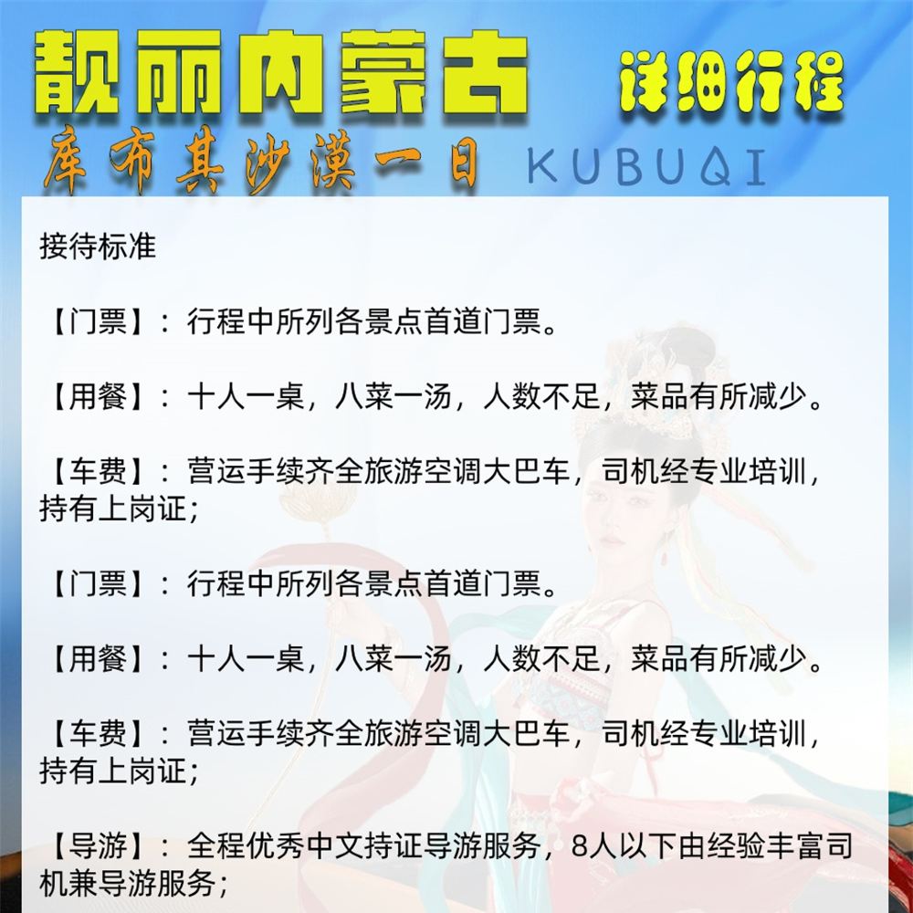 ※ Depart from the designated location by vehicle to National AAA Tourist Attraction---Kubuqi