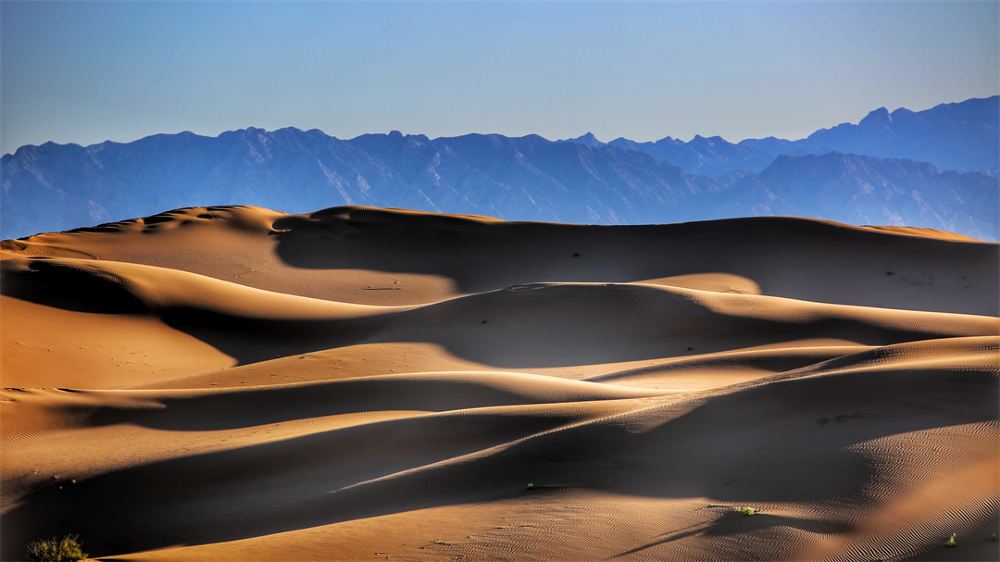 Standing in the endless desert, it feels as if all worries have been left behind. The tranquility and vastness bring an unprecedented sense of freedom. The distant sand dunes, shaped like a maiden's silhouette, shift left and right with the wind's caress, creating a dynamic beauty.