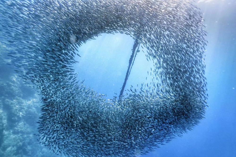 Here, adults can enjoy cliff diving, watch sunsets, and explore crevices. The most exciting part is that children can witness massive schools of sardines moving through the water, sometimes so dense they block out the sunlight. Against a backdrop of gentle blue hues, the shimmering sardine balls glow with a dark golden sheen. If you swim toward a school, they'll shyly dart away—but not too far—circling around you like a mesmerizing whirlpool, transforming you into the calm eye of a living storm. The swirling light and shadows create an otherworldly spectacle. As the fish dart past, you can hear the rhythmic swish of their synchronized turns. Surrounded by the shimmering school, it's an overwhelming feast for the senses—dazzling, disorienting, and utterly magical.