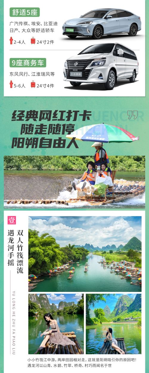 2. Premium value route: Experience the Yulong River bamboo rafting and "A Thousand Miles of Rivers and Mountains" painting in one day, plus a unique hiking tour along the Li River Scenic Area.