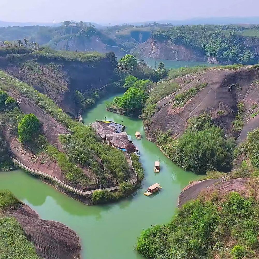 Unique Danxia landforms and picturesque waterscapes