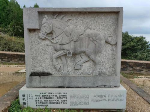 ▲ The Six Steeds of Zhao Mausoleum are respectively White-hoofed Crow, Curly-maned Horse, Purple Lightning, Tèle Stallion, Green Shadow, and Shifa Red. These six warhorses accompanied Emperor Taizong of Tang in conquering the empire, each displaying remarkable bravery and heroic bearing. The six steeds currently seen on Zhao Mausoleum Mountain are replicas.
