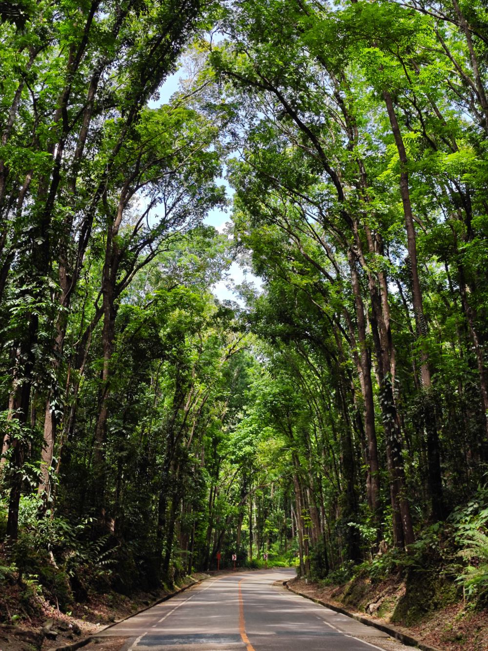 A "natural air-conditioned corridor" on the way to the Chocolate Hills! This 2-kilometer road is canopied by towering mahogany trees, dappled sunlight filtering through as temperatures drop by 5°C. Born from a 1947 post-war reforestation project, this transformed barren hills into an ecological sanctuary—a miracle of human-nature reconciliation. Pause briefly to capture the painterly scene where deep forest paths intertwine with crimson railings.