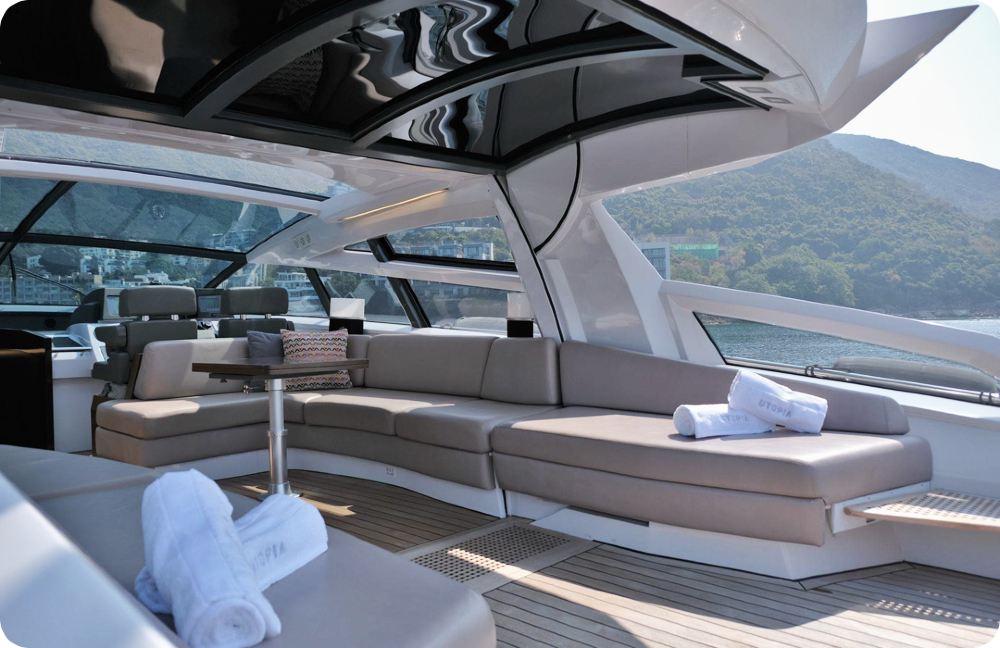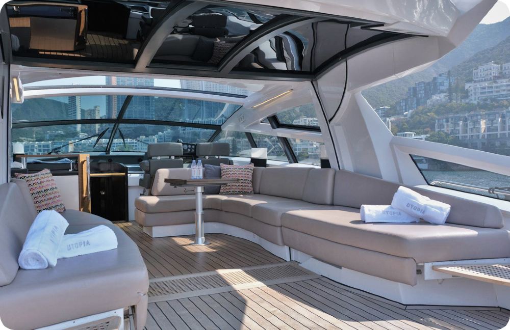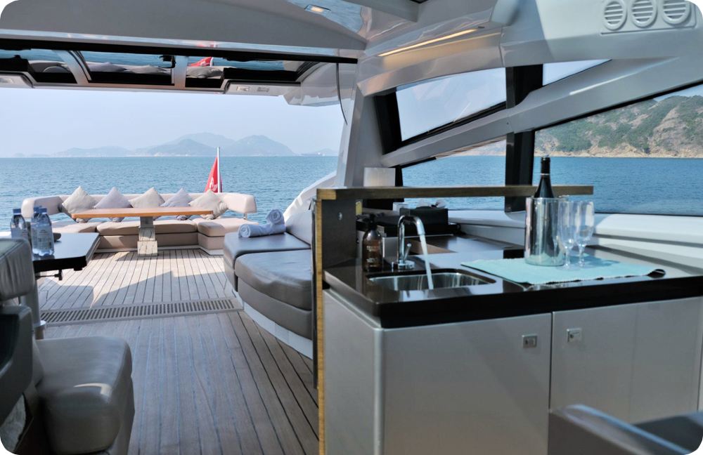 Baia 70 - FALCO was refitted in 2021 and is now available for private celebrations and corporate activity charters. FALCO is also the fastest luxury yacht in Hong Kong to date, ensuring you reach your chosen destination quickly, even remote ones. FALCO's interior features warm beige and cream tones, complemented by walnut wood finishes. The open salon is equipped with sliding skylights and side windows, designed to maximize space and light, creating a cozy environment for guests to relax while enjoying the sea view. FALCO has three spacious cabins, accommodating 10 guests for daytime activities and 4 guests overnight, making it suitable for events of various sizes. FALCO's outdoor space is thoughtfully designed. Guests can enjoy outdoor dining at the stern table or sunbathe on the large forward deck, which offers unobstructed views. Three crew members are dedicated to providing personalized service, ensuring all onboard facilities and equipment meet high standards for an exceptional charter experience. For those seeking a premium yacht experience or a venue that combines uniqueness with outstanding service, Baia 70 - FALCO is the perfect choice for your next event. The yacht features 2 cabins—1 master cabin and 1 VIP cabin—with twin berths.