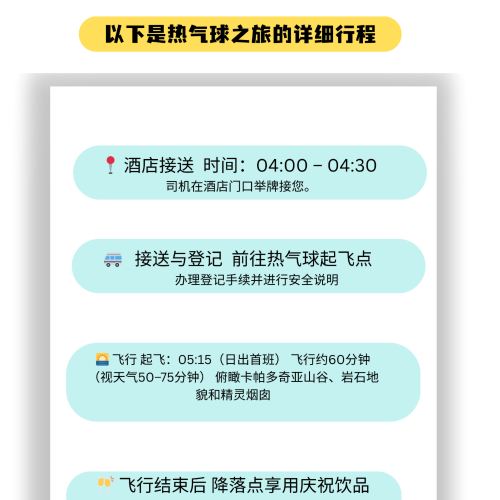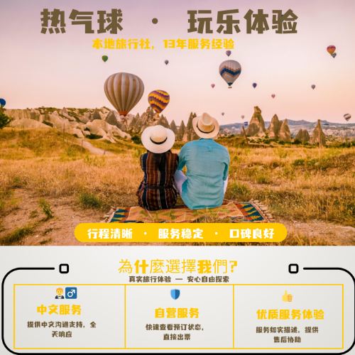 The Cappadocia hot air balloon ride is a must-try classic experience in Türkiye. Enjoy morning pickup to the launch site, then gently ascend in a balloon to admire the sunrise and unique "fairy chimney" rock formations. During the flight, you'll get a breathtaking aerial view of valleys, villages, and surreal landscapes while soaking in the unparalleled romantic atmosphere. After landing, celebrate with champagne and breakfast before being driven back to your hotel.