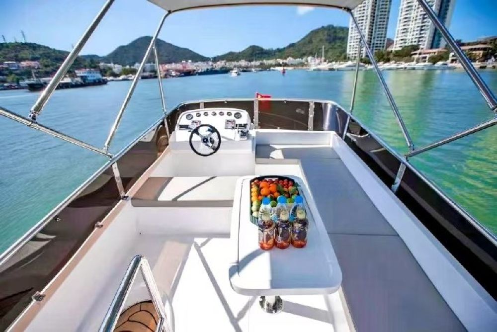 45-foot luxury yacht with a sleek and elegant exterior, bright and tidy interior space, and a flybridge. Regularly cleaned and maintained, the yacht is in excellent condition with smooth and safe navigation, offering a comfortable and high-end experience for business, parties, or vacations.