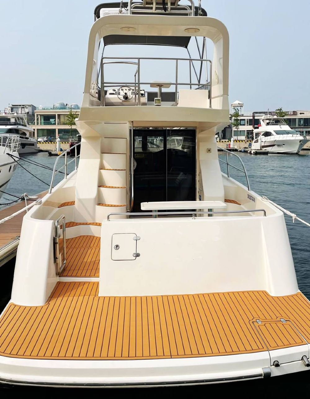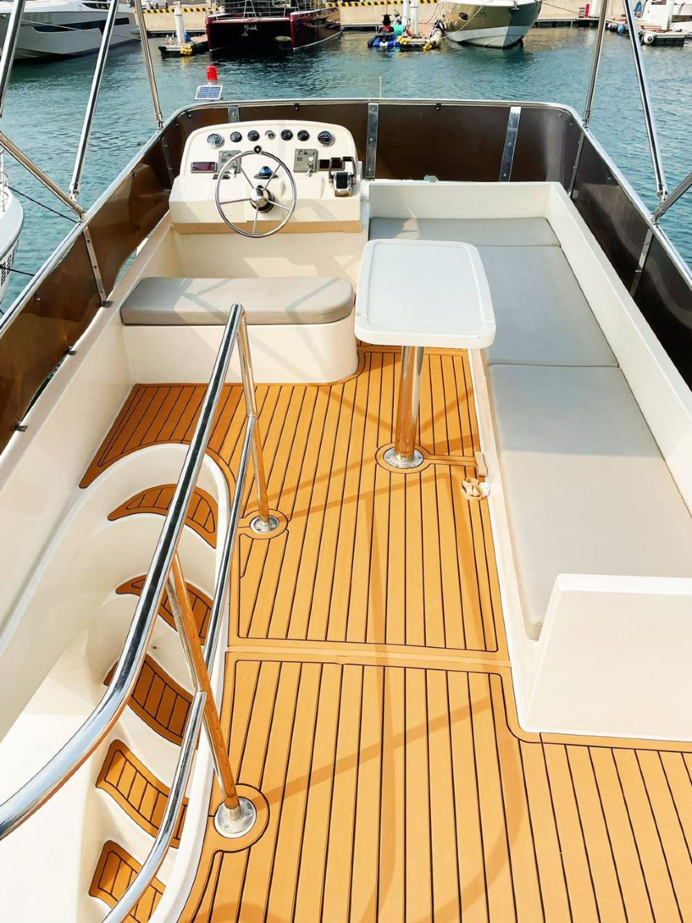 48-foot luxury yacht with a flybridge, featuring a bright and tidy interior. The hull undergoes regular inspections and maintenance, ensuring excellent condition, smooth sailing, and safety. Whether for business, parties, or vacations, it delivers a comfortable and high-end experience.