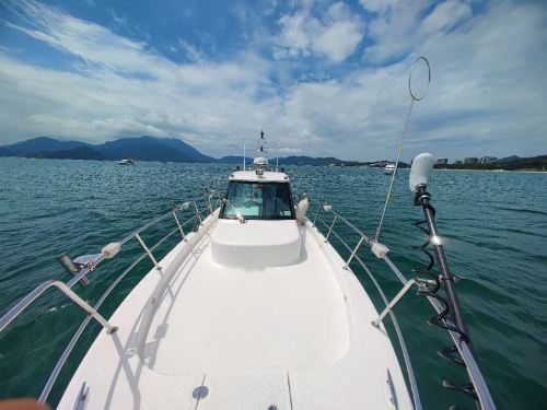 Standard fishing gear with bait, air conditioning, Shark Sister automatic lift top current machine, twin 300hp Mercury engines, full speed of 40 knots, quickly reaching any fishing spot.