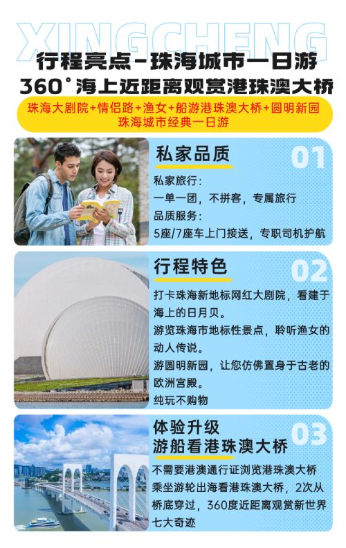 Zhuhai 1-Day Tour: Zhuhai Opera House + Wild Tiger Island + Xianglu Bay Beach Private Charter with Chinese and English Services