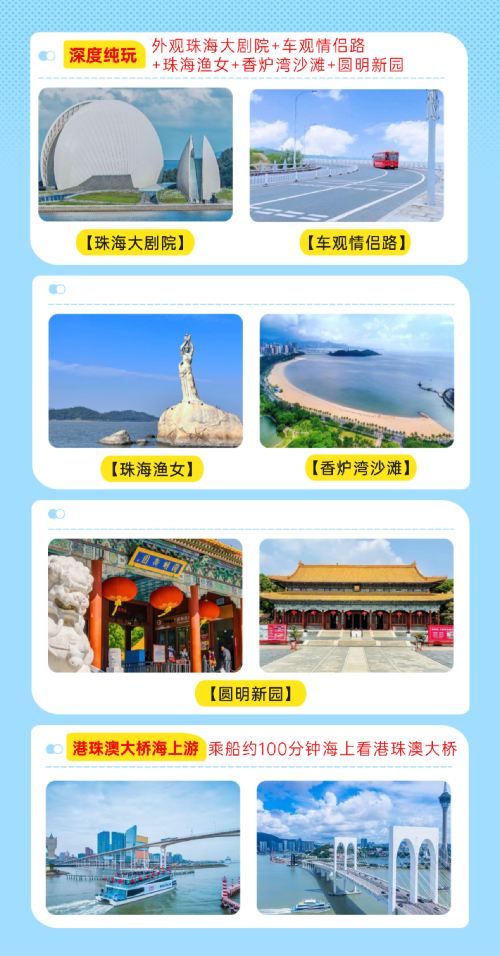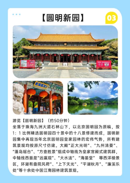 This route is incredibly romantic: "The New Yuan Ming Palace - Seaside Park - Xianglu Bay Beach - Zhuhai-Macau Bay Night Cruise"