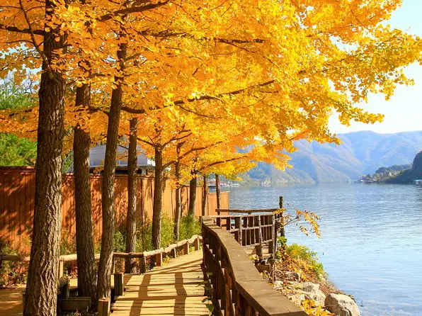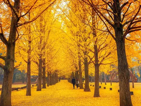 Nami Island is stunning in autumn, with vibrant red and yellow leaves everywhere—perfect for a day trip with friends. Sitting at a café and enjoying coffee together while surrounded by this colorful scenery made the experience even more special and memorable