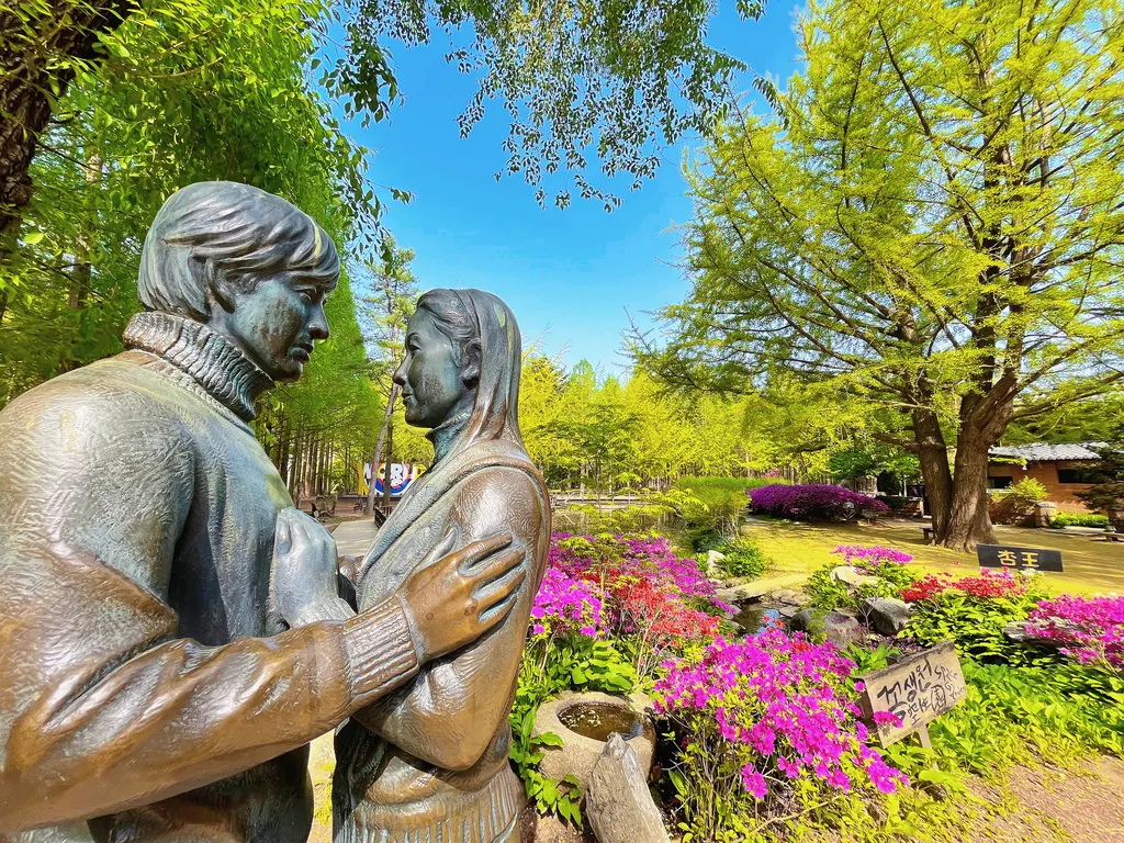 This is the place I think I should visit most when I come to Korea, not only because it is the filming location of Winter Sonata, but also because the scenery here is very good. After coming here, I feel that my whole pace has slowed down a lot. I walked slowly on the forest path of Nami Island. When I was tired, I stopped to find a bench on the side of the road to rest and eat something. Of course, the garbage should be taken away, or if you bring a blanket, you can sit on the grass. The buildings on Nami Island are quite distinctive and artistic, and some of the buildings are very similar to the style on Jeju Island. You can take a boat to Nami Island, or you can take a high-altitude cable car to that one. I will try the high-altitude cable car next time.